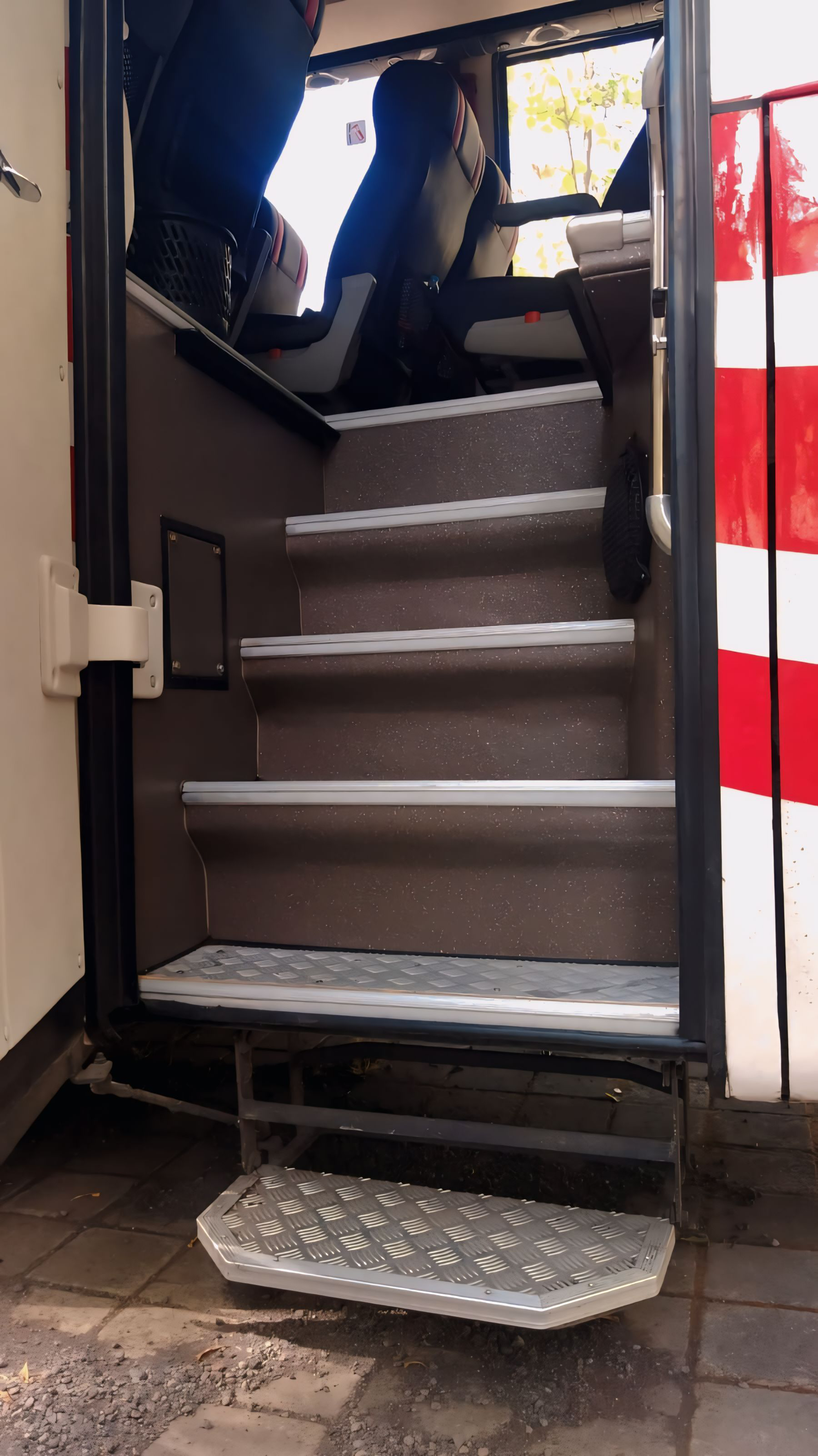 - Pintu masuk dan/atau keluar mobil bus sekolah dilengkapi dengan anak tangga.