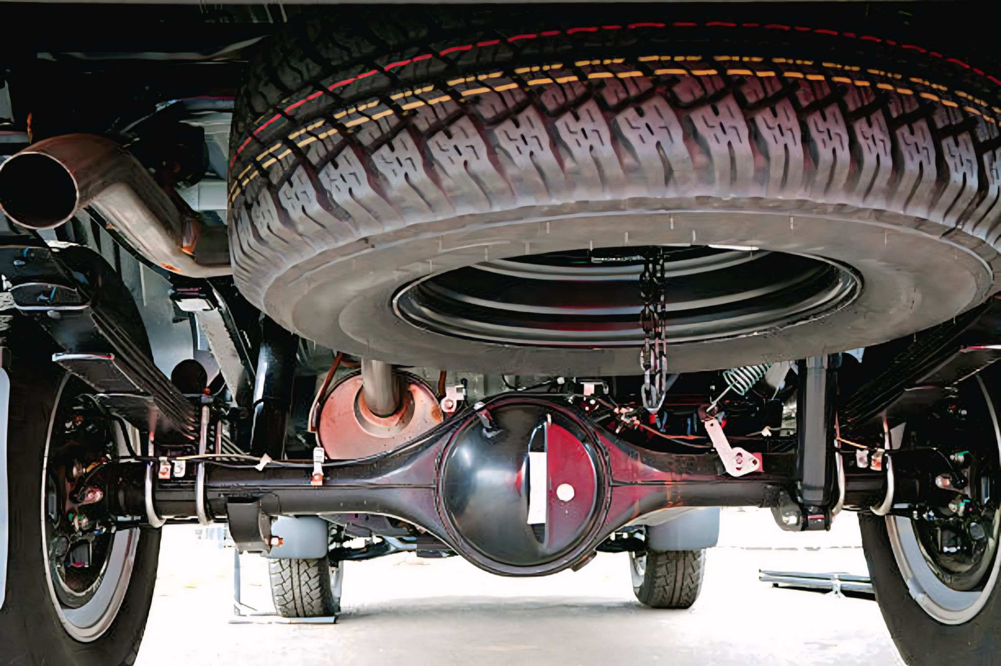 - Pastikan dilengkapi dengan rantai untuk alat bantu penguat ikatan roda cadangan.